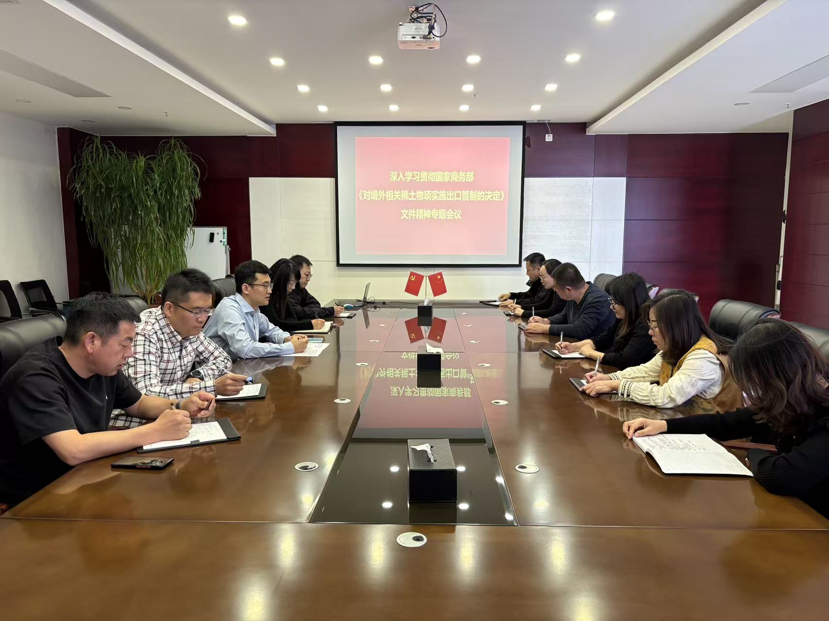 集團(tuán)黨支部組織各部門、各項(xiàng)目組深入學(xué)習(xí)貫徹國家商務(wù)部《公布對境外相關(guān)稀土物項(xiàng)實(shí)施出口管制的決定》文件精神